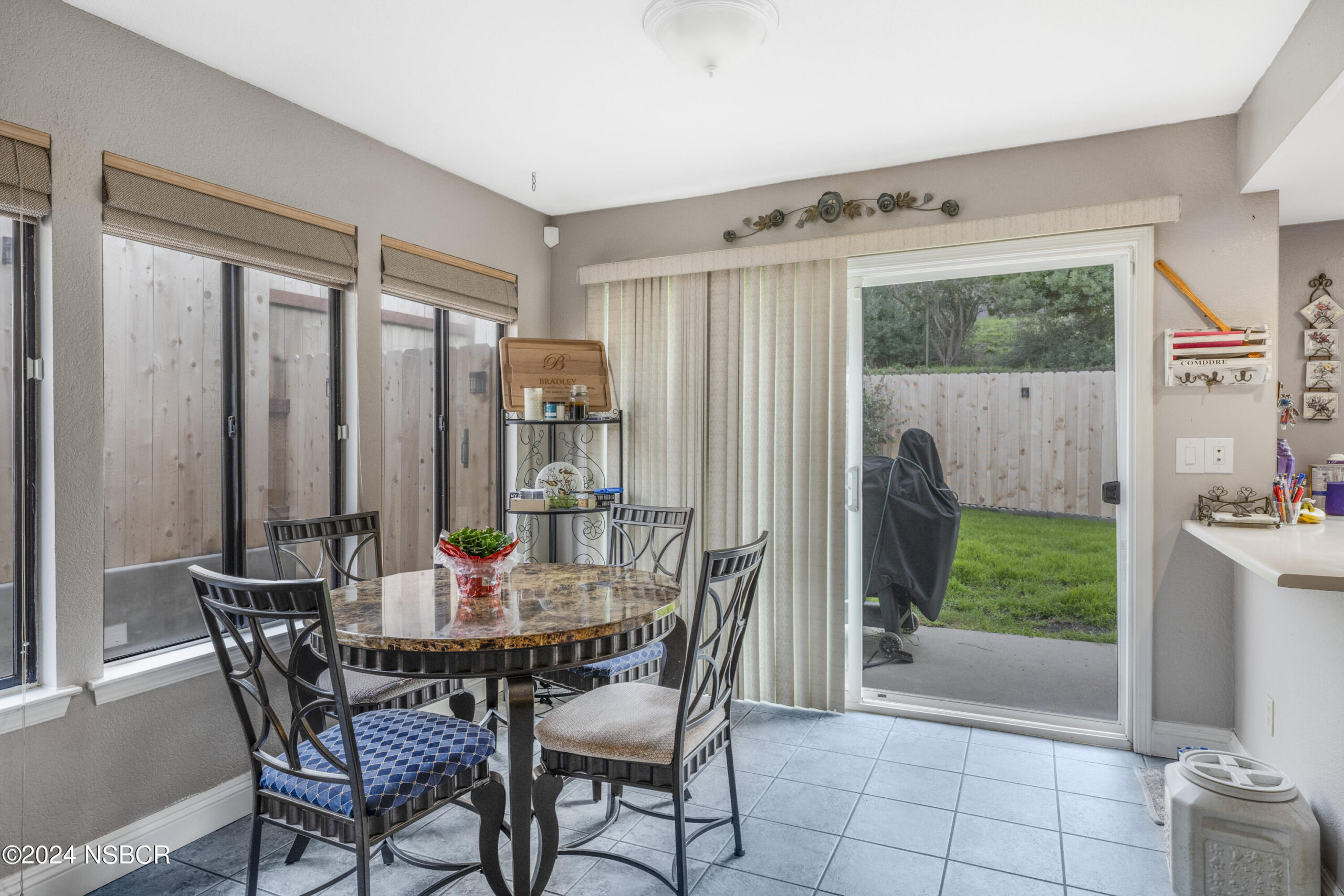The kitchen features ample cabinetry that provides an abundance of storage space. Natural light floods the room, creating a warm and inviting atmosphere, while offering a picturesque view of the backyard, making meal preparation a delightful experience.